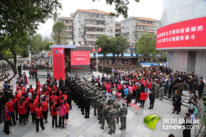 盐田区领导董秀、夏德鳌、徐刚、乔宏彬、马广明以及香港新界议员、乡事会成员,东纵老战士、部队官兵、深港两地群众等各界人士共同参加此次活动。活动现场,深港两地小学生代表用稚亮的声音朗诵爱国诗歌《我骄傲,我是中国人》,整齐划一的朗诵声传递出斗志昂扬的气魄。深圳信息职业技术学院的学生们演绎了配乐诗《青春中国梦》,缅怀为新中国解放奉献出生命与热血的老一辈革命者气壮山河的大无畏精神。