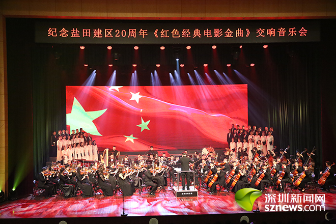 深圳新闻网讯 (记者 潘峰)3月21日晚,盐田建区20周年“岁月如歌-红色经典电影金曲”专场多媒体交响音乐会在盐田会堂开演。近百位盐田本土艺术家用一曲曲激昂的红色歌曲带领机关干部、企事业单位、辖区群众等近千人重温激情燃烧的岁月。