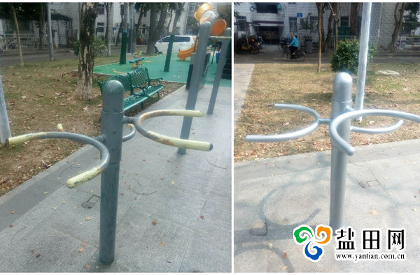 健身路径等公共体育设施为建设健康盐田提供基本保障,为广大人民群众提供一个良好的健身环境,同时也是民生的需求。近日,中英街管理局相关工作人员在巡查中,发现部分健身器材外表有失美观,并及时联系相关部门进行维护,对快乐大转轮、双杠、头扭腰、压腿架、双人蹬力器、肋木架和两联单杠进行了喷漆,并对其它健身路径进行了逐一检查,确保器材的安全性和使用性,给社区居民群众提供一个安适的健身环境。
