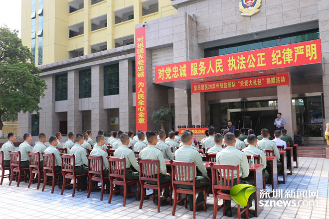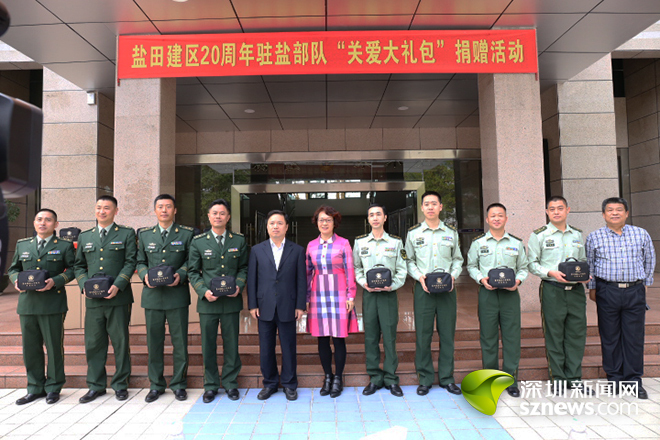 深圳新闻网讯(记者 陈蓉)3月30日,驻盐部队官兵“关爱礼包”赠送活动在边防六支队四大队十三中队院内举行。据悉,此次活动是盐田在建区20周年之际,推出的系列活动之一,旨在让辖区广大人民和部队官兵共享盐田发展成果,激励全区人民不忘初心、牢记使命、高举旗帜、继续前行。副区长乔宏彬代表盐田区委区政府向驻盐部队官兵赠送了1298份“关爱礼包”。