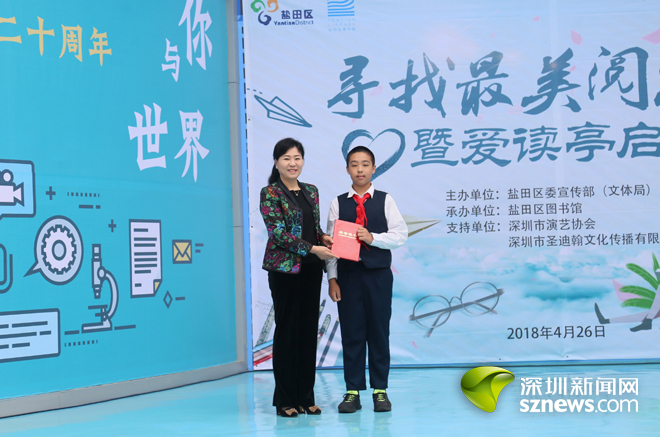 据悉,盐田区致力于倡导全民阅读活动的深入开展,鼓励辖区居民切实参与到阅读活动中,多读书、读好书。在2018年“书香岭南”全民阅读活动中,由盐田区图书馆推荐的盐田区外国语小学学生罗梓轩,经过专家评审委员会的评选,从全省71名候选人中脱颖而出,荣获广东省十大“粤读之星”称号。