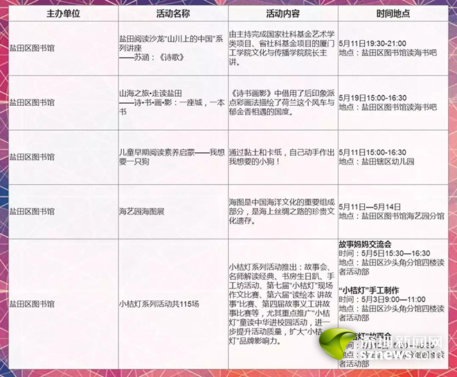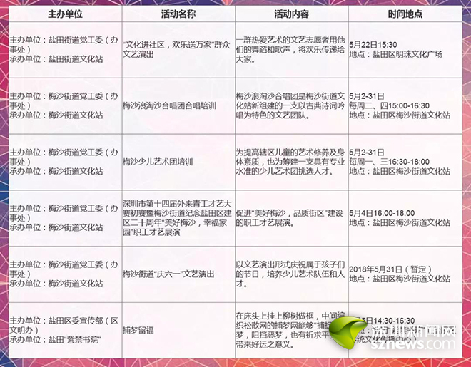 深圳新闻网讯 (记者 潘峰)记者从盐田区了解到,2018年5月盐田区文化体育菜单新鲜出炉,整个5月期间,近50项文化体育大餐将满足市民精神文化需求。