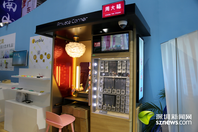记者看到,盐田区周大福、百泰等几大珠宝企业携黄金珠宝设计新品和精品亮相主展馆。2017囍福设计大赛获奖作品作为盐田区文化产业的创新成果惊艳亮相,打破以往人们对传统结婚金饰的定位,秀出了世界民族文化下的“合”之魅力,打造出“福地、福金、福运”的“盐田珠宝”品牌。在周大福的自助试戴柜旁,不少女性观众聚集在此,拿出手机扫描柜体上的二维码,便可开柜拿出中意的首饰进行试戴,如现场购买还可享受8.8折的优惠价格。