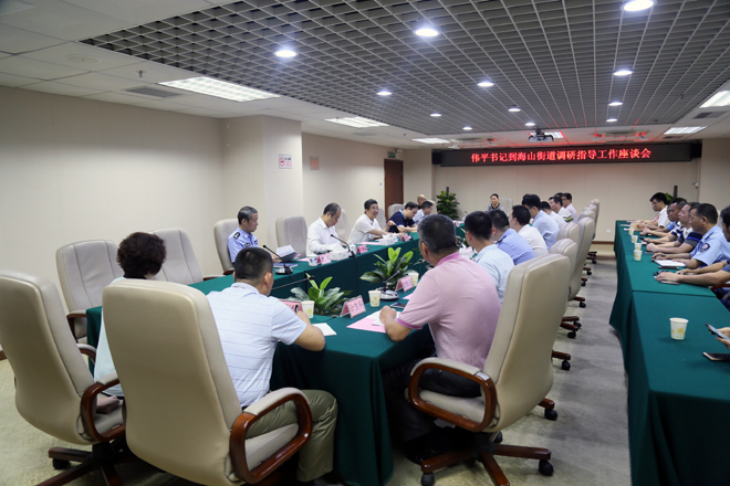 听取汇报后,黄伟平对海山街道及各相关部门在社会治理、安保维稳、扫黑除恶及基层协管队伍改革等方面所做的大量工作给予了充分肯定。黄伟平表示,要进一步提高政治站位和责任意识,及时查找问题,推动相关重点工作尽早落地。街道要切实提升政治意识、责任意识、担当意识,以高度责任感肩负起属地职责。要进一步筑牢安保维稳防线,做好平安建设各项工作,严格落实扫黑除恶各项工作部署。要坚持问题导向,加大对劳务纠纷、物业管理纠纷等重大敏感时间节点的排查管控力度,集中梳理重点防控区域隐患问题,明确并固化处置机制,及时消化化解问题隐患,巩固平安建设各项成果。要点面结合,采取“座谈会+基层走访”等多种形式,不断搜集基层协管队伍改革机制运行中出现的各项问题,及时提炼总结深化改革经验,加强部门之间沟通协作,强化日常管理,从根本上夯实基层基础。要加大宣传培训力度,针对性开展专业培训,提升基层队伍人员专业素养和业务素质。