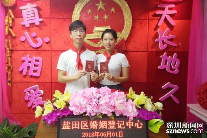 深圳新闻网讯(记者 郑创彬)“六一”领证,过一辈子的儿童节。儿童节因简单易记、充满童真,逐渐成为市民登记结婚备受追捧的良辰吉日。6月1日一大早,盐田区婚姻登记中心的门口已经排满了预约儿童节来登记结婚的“超龄儿童”。他们有的拿着气球、有的抱着鲜花和公仔礼物,期待着甜蜜一刻的到来。