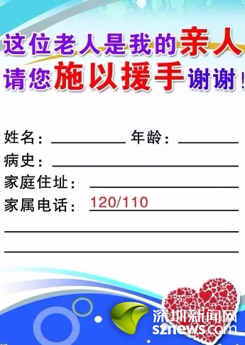 NO1:挂一张身份卡。不少走丢的老人小孩,都有一个明显的特征,就是缺乏自助能力,不能准确地表达,向路人或民警求助。此时,家中如果有这一类被监护的老人小孩,可以为他们准备一张身份卡,买一个卡套装好,挂在老人小孩的脖子上。身份卡上写清楚老人或小孩的姓名、家庭住址及联系电话;也可将标有身份信息的布片缝在老人小孩的外套上,方便救助人及时对老人小孩进行救助。