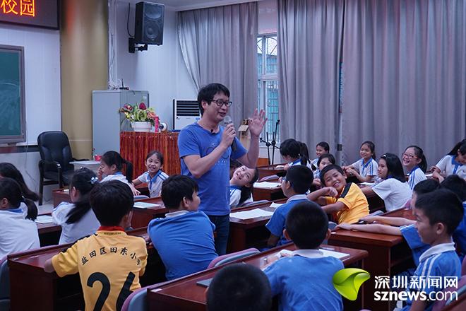 本期活动邀请著名儿童文学作家陈诗哥做客盐田,以“历史故事与儿童想象力”为题,给孩子们精彩讲述充满童趣的历史故事与激发儿童想象力的关系。活动中,陈诗哥用中国名著《西游记》引申开来,陈诗哥表示,《西游记》影响了几代中国人的童年,“想象,是我们的第三只眼睛,童年时期是人生中最重要的启蒙阶段,长大后也要永远保持着好的想象力,保持着一颗童心,生命就会有无限可能。”他用充满童趣的历史故事、奇特的思维逻辑带领孩子们进入梦幻而富有哲理的童话世界,向孩子们诠释童话的含义。