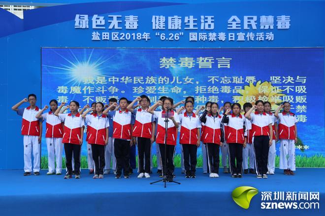 深圳新闻网讯(记者 邓雪婷)6月26日下午,盐田区举行2018年“6.26”国际禁毒日宣传活动,向广大市民普及禁毒法律法规、毒品知识和宣传毒品的危害,增强广大市民、特别是青少年识毒、防毒、拒毒能力,筑牢全民禁毒意识。区委副书记、政法委书记黄伟平参加活动。