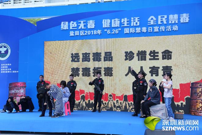 活动中,深圳市温馨社工服务中心的“馨起点”朋辈义工服务团队队员石柱进行禁毒倡导宣讲,他以现身说法的方式,讲述了毒品带给自己的切身之痛,警醒在场所有人。田东小学学生表演的禁毒舞台剧《毒品之亡》,让市民更直观地认识、了解毒品的危害性,提高识毒拒毒能力。