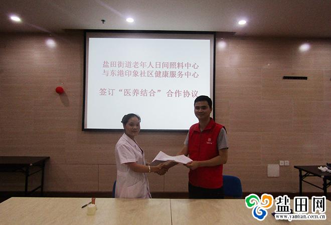 深圳新闻网讯 (记者 潘峰 通讯员 江新标)为继续创新实施机构养老服务的新型模式,2018年6月29日上午,盐田街道老年人日间照料中心与东港印象社区健康服务中心在日照举行“医养结合”签约仪式。日照主任江新标、社康主任陈美红等参加签约仪式。
