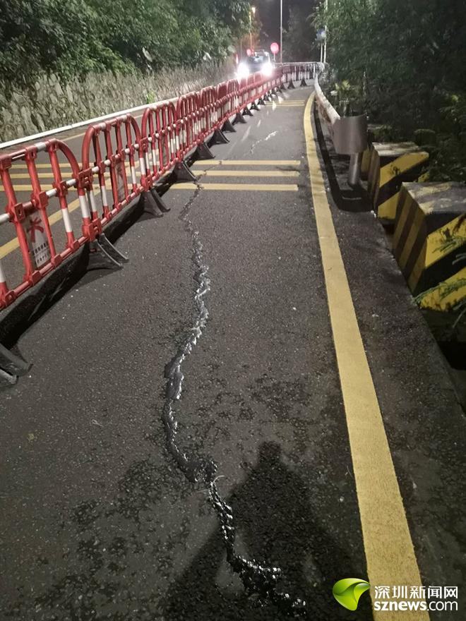 盐田交警相关负责人表示,该路段因路基边坡被雨水冲刷,路面出现较大的裂缝,有塌方的危险,请前往恩上水库方向的车辆绕道行驶(二通道通往区政府方向行车不受影响),交警部门也将加大巡逻,排除道路安全隐患,为车辆和行人提供安全的出行环境。