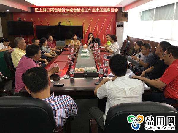 深圳新闻网讯(记者 陈琳君 通讯员 黄华龙)8月22日下午,针对居民反映的恩上公路隔音墙拆除,噪音扰民问题,区城管局、区环水局、海山街道城管科、田东社区工作站组织部分居民代表以及物业单位负责人开展噪音检测工作征求居民意见会。