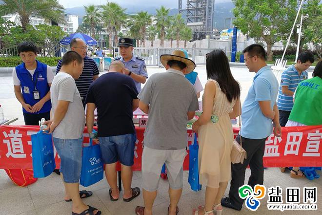 深圳新闻网讯(记者 黄一珏)九月七日下午,在中秋节来临之际,梅沙街道为身处他乡的游子异客送来一份特殊的礼物,在大梅沙海滨公园太阳广场开展扫黑除恶、防邪、禁毒、反恐、人民调解宣传活动,防止邪教利用中秋节的“情感炮弹”对人民群众发动进攻。