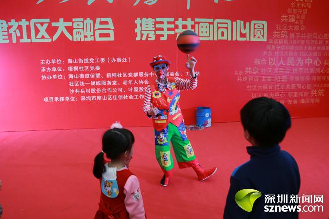 活动中,来自梧桐社区的三个自然村(叶屋村、沙井头村、暗径村)原村民以及各界嘉宾围坐在一起,一边品尝地道客家美食,一边欣赏精彩的文艺节目。热情洋溢的舞蹈、逗趣不断的小丑表演、幽默诙谐的口技表演……活动现场掌声不断,笑声不停,新颖多样的节目,精心编排的内容,让在场观众真切感受到邻里亲善相助之美。