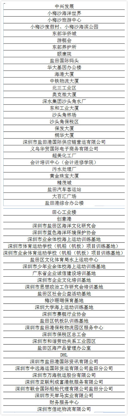 盐田区生活垃圾分类全区域覆盖机关企事业单位名单摘录