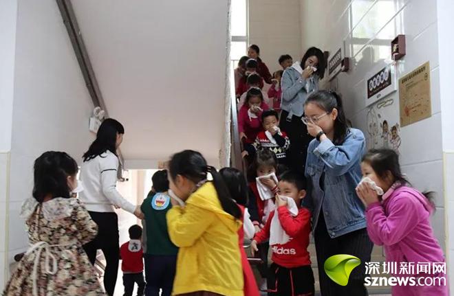 随着警报声的突然响起,集会疏散演练正式开始。老师们有条不紊地组织幼儿用毛巾捂住口鼻,弯腰低身,按照逃生路线,迅速离开集会地点。撤离到安全区域后,老师随即安抚幼儿,整理队伍,清点人数。整个过程指挥到位,秩序井然。