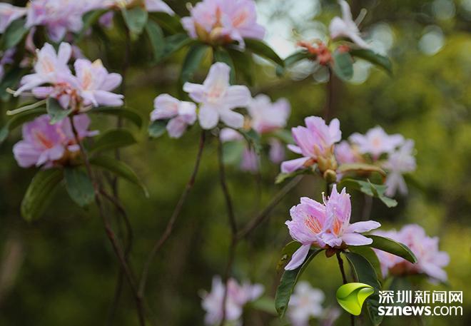 记者了解到,本次花会中的毛棉杜鹃是深圳市唯一的乔木型杜鹃,树干一般高八、九米,花朵有淡紫色、粉红色、粉白色,花开时节铺满整个树冠。乔木型杜鹃大部分种类分布于海拔2000到4000米的高山地区,在深圳只有梧桐山沿线可以欣赏到。