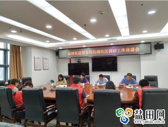 深圳新闻网讯(记者 陈琳君 通讯员 刘文娇)2019年4月9日下午,盐田街道党工委书记李金泉、盐田街道党工委副书记、人大工委主任徐富俊、盐田街道组织宣传办公室副主任徐伟到沿港社区调研。沿港社区两委委员、工作站工作人员参加了会议。