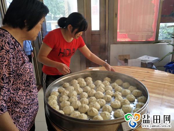活动开始,工作人员把提前准备好的面粉、肉、调料等食材,一一分发到每位居民手中。居民们纷纷开始交流“包子如何发酵?如何擀包子皮?如何捏出漂亮的形状……”等做包子的方法和技巧。刘阿姨是做包子的能手,她给现场人员分享做包子的关键技巧,她耐心地教导大家:“包子皮一定要边缘溥,中间厚,这样才能更好捏褶。”在刘阿姨的巧手下,一个个形状漂亮的包子快速制作出来。白花花的包子出锅后,老年志愿们还第一时间把热腾腾的包子送到高龄和行动不便的老人家中,让他们也感受到浓浓的邻里情。