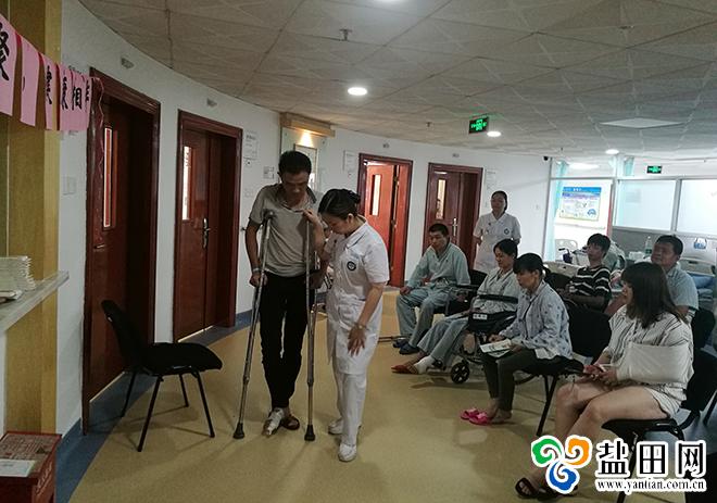 首先由骨科黄护长为患者进行康复训练指导,向患者传播正确康复锻练及柺杖的使用方法,提升康复能力,并应用Teach-back的方法对患者进行提问,场面氛围活跃。患者们踊跃抢答,答对者获得骨科护理组精心准备的小礼物。紧接着,春暖社工给患者发放工伤政策资料资料以及提供现场解答等服务。患者通过了解工伤政策知识(包括工伤定义、工伤申请流程及相关赔偿),提升了维权意识。