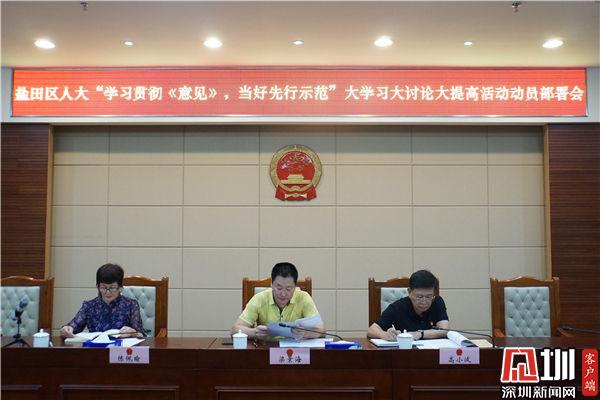 见圳客户端·深圳新闻网讯(记者 陈琳君)近日,盐田区人大召开“学习贯彻《意见》,当好先行示范”大学习大讨论大提高活动动员部署会。区人大常会主任梁景海、副主任高小波、陈佩瑜出席会议。