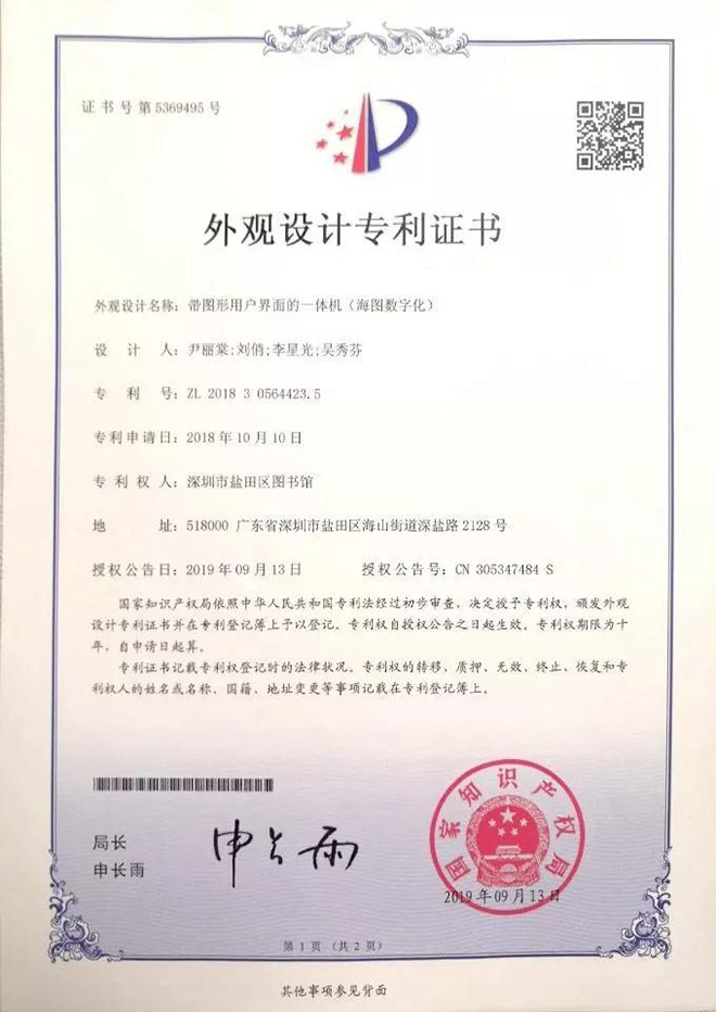 见圳客户端·深圳新闻网讯(记者 杨春丽)近日,记者从盐田区图书馆获悉,该馆带图形用户界面的一体机(海图数字化)获得国家知识产权局颁发的外观设计专利证书。