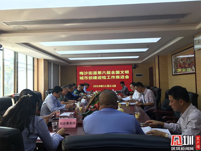 见圳客户端·深圳新闻网讯(记者 邓雪婷)为扎实推进第六届全国文明城市创建工作,进一步提升街道创建质量水平,11月11日下午,梅沙街道召开第六届全国文明城市创建迎检工作推进会。街道各创建工作成员单位主要负责人及辖区责任单位负责人参加会议。会议由梅沙街道党工委委员、组宣办主任欧阳洪主持。