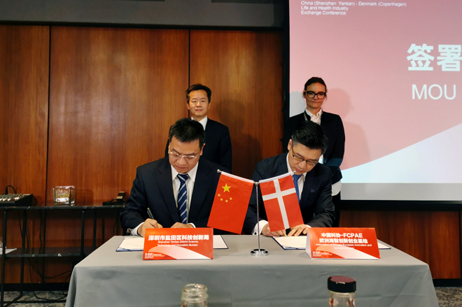 12月16日,中国(深圳•盐田)——丹麦(哥本哈根)生命健康产业交流会在丹麦首都哥本哈根举行。陈清与哥本哈根市议员王海迪出席活动并致辞,丹麦全球产业方案集团首席执行官Gustav Bjorn在会上作主旨演讲,南丹麦地区管理局贸易与文化部负责人Desiree Ulrich出席会议并见证了合作备忘录的签署。