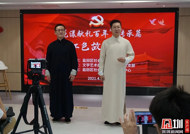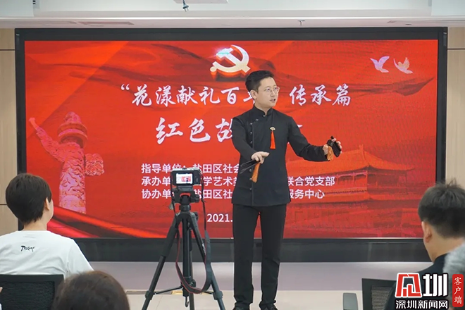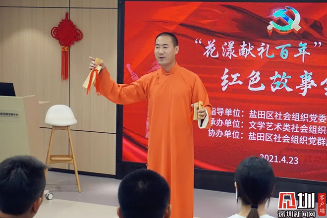 活动邀请到曾获"五个一工程奖”“鲁迅文学奖”“牡丹奖”等奖项的优秀党员林泽平、致力于挖掘盐田本土红色故事的文学艺术类社会组织联合党支部书记牛纪远等五位同志,通过评书、讲述、快板等多种形式,讲述革命先辈的故事。