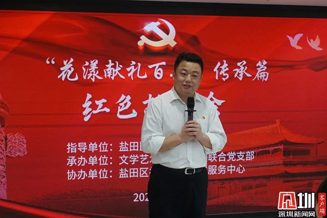 见圳客户端·深圳新闻网讯(记者 潘峰)4月23日,由盐田区社会组织党委主办、区文学艺术类社会组织联合党支部承办、区社会组织党群服务中心协办的“花漾献礼百年”传承篇之红色故事会顺利开展,30余名盐田区社会组织党员参加活动。