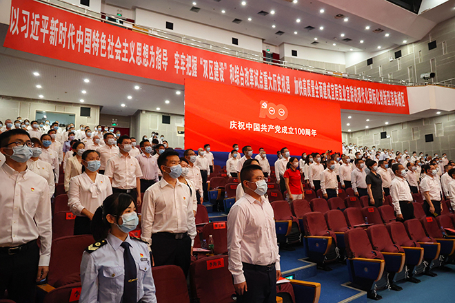 会上,全体人员观看了《盐田区庆祝建党100周年“七个一百”系列活动专题片》,盐田区委副书记谷云宏宣读了《中共深圳市盐田区委关于表彰优秀共产党员、优秀党务工作者和先进基层党组织的决定》,盐田区委陈清书记为50年以上党龄的老党员代表颁发“光荣在党50年”纪念章,区领导为受表彰代表颁奖。盐田公安分局副局长叶永远、区卫生健康局副局长甘勇、区投资服务中心副主任黎斯达、盐田街道东海社区党委书记黄远超、深圳市集装箱运输协会党委书记罗江晓等“两优一先”表彰对象代表作交流发言。