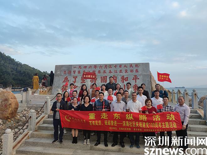 读特客户端•深圳新闻网2021年10月29日讯(记者 潘峰 通讯员 朱丽婵)为深化党史学习教育,感悟革命历史,继承和发扬党的优良传统,强化社区支部共建,增强基层党组织战斗力和凝聚力,10月27日下午,梅沙街道滨海社区党委联合辖区未来学校党支部开展开展重走“东江纵队”红色之路主题党日活动。