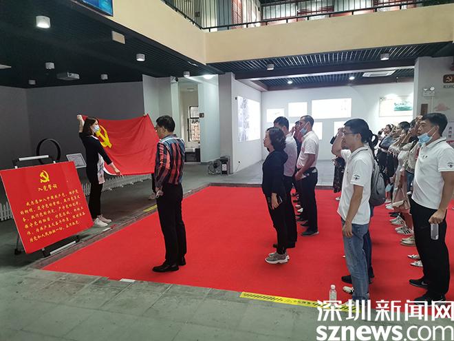 随后大家前往大鹏沙鱼涌,追寻红色足迹,重走“东江纵队”之路,参观沙鱼涌红色教育基地,深入了解东纵革命历史。在沙鱼涌红色记忆纪念馆,党员们通过了解东江纵队和北撤历史脉络,追随东江纵队革命足迹,切身感受东江纵队的革命精神,缅怀革命先烈。在纪念馆,党员们重温了入党誓词,感受涌动的初心,激发前行的动力。在东江纵队北撤纪念公园,由东纵司令员曾生题写的“为了坚持国内和平,从此登船北撤山东”巨型石碑耸立在礁石之上,昭示着“铁心向党、赤心为民、不畏艰险、不懈奋斗”东纵精神永垂不朽。