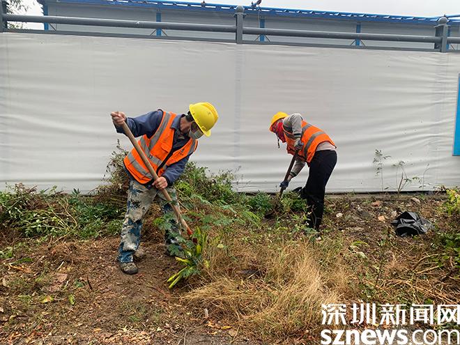 “有不少绿化带因地块改造无人管理,长满杂草且藏有垃圾,一些断木枝也要趁大风天气来前清理,免得被吹到路上影响通行!”12月21日,来自中建一局的志愿者们和社区的党员,梅沙街道城建办、执法队的工作人员拿着铲子和夹子,穿梭在绿化带里除草、清理枯枝。劳动中,冰冷的雨水已打湿了他们的衣服,路边的车主纷纷竖起大拇指点赞。