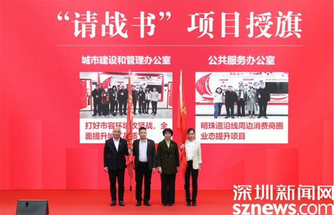 随后,谷云宏、曾红英等领导向“为我点赞”个人与集体颁奖,并向下达任务书的“请战书”项目授旗。盐田街道共梳理攻坚克难“请战书”项目33个,把每个任务落实到具体项目、每个项目量化到具体指标、每个指标明确到具体人头,倒排进度、挂图作战,全力推进各项工作决战决胜。