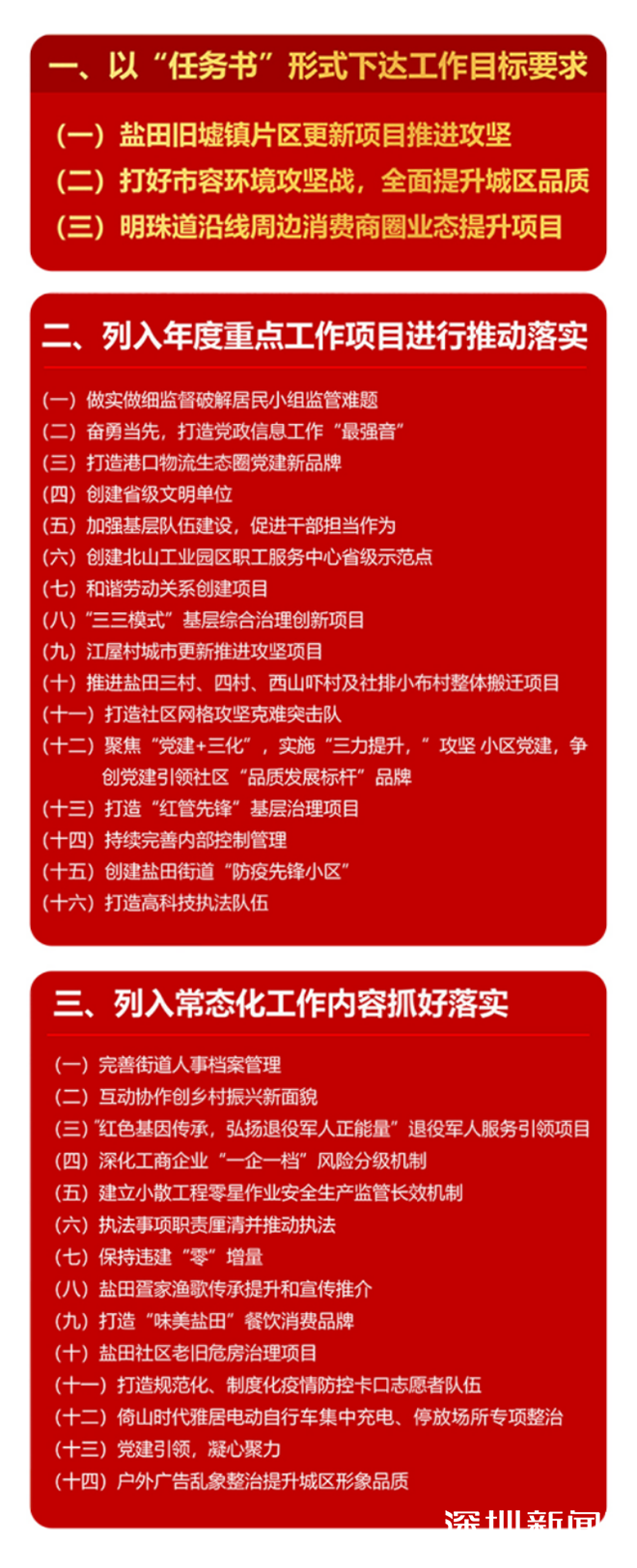 盐田街道攻坚克难“请战书”项目清单