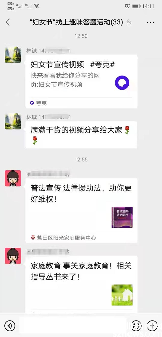 读特客户端•深圳新闻网2022年3月9日讯(记者 邓雪婷)为推进辖区妇女法制宣传教育,增强女性法律意识,提高妇女维权能力,3月8日,梅沙街道滨海社区妇联联合社区党群服务中心将欢庆“三八节”活动和法制宣传有机结合起来,开展线上学法活动,为女同胞们送上一份特别的礼物。