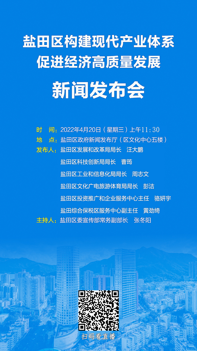 满足哪些条件才能享受扶持政策?新落户的企业可否申请资金资助?科技创新类企业又有哪些奖励措施?4月20日上午11点半,在盐田区政府新闻发布厅,盐田区将以“构建现代产业体系促进经济高质量发展”为主题,举行专题新闻发布会,全方位解读《扶持办法》。