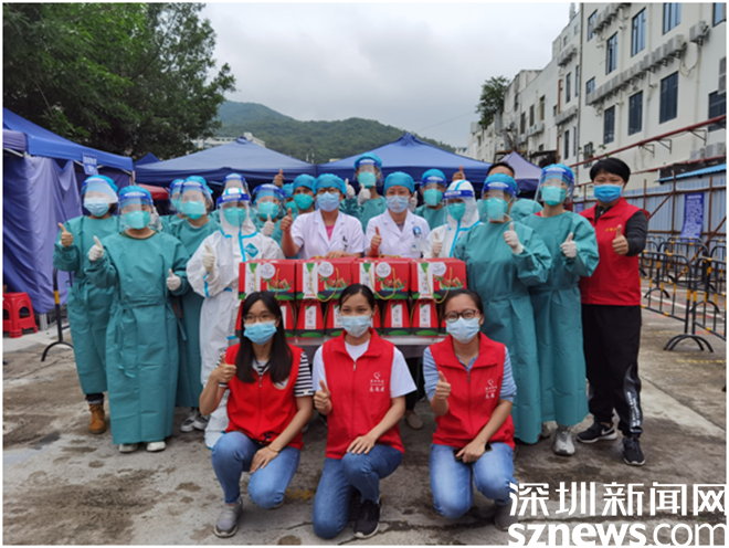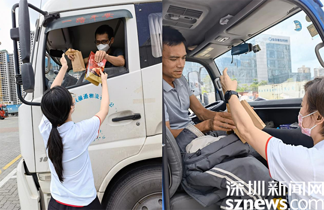 打包好的粽子很快被社工送往社区避风塘核酸检测点和各个防疫卡口。每到一处,慰问团队为防疫工作人员送上新鲜粽子,并与他们亲切交谈。正在值岗的红姐拎着粽子,很是开心的说,“社区真的很有心,经常挂念着我们,身在盐田倍感幸福,我们一定会继续踏实、认真做好每一个环节,请社区放心。”