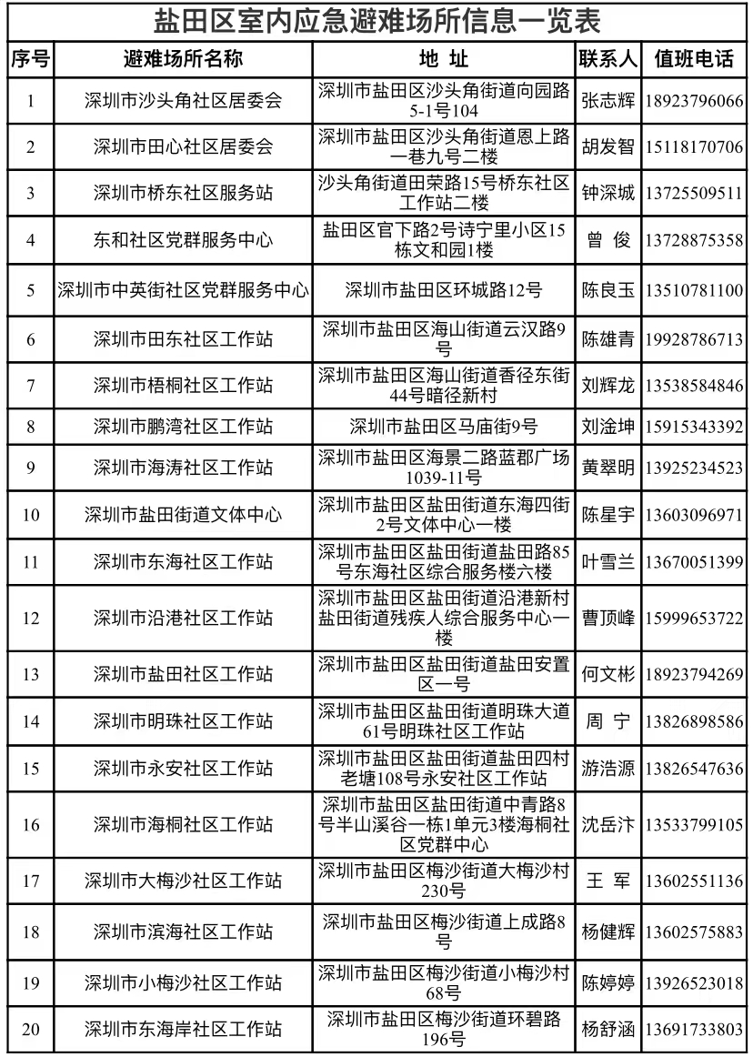3.台风黄色预警生效时,沙头角社区等20个避难场所开放,有需要的市民可前往;