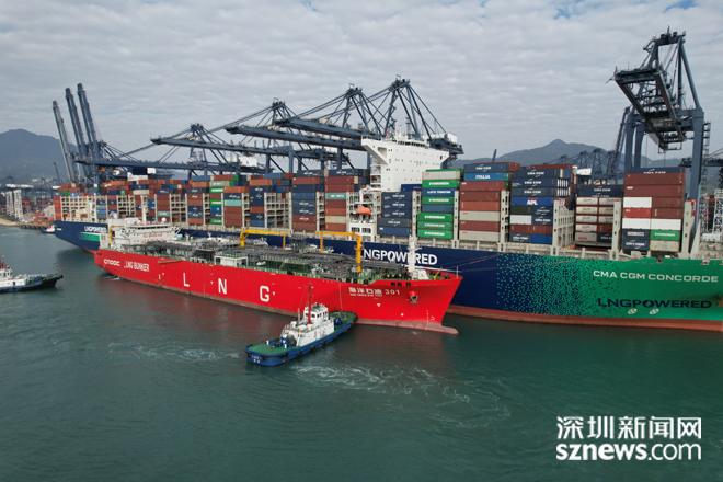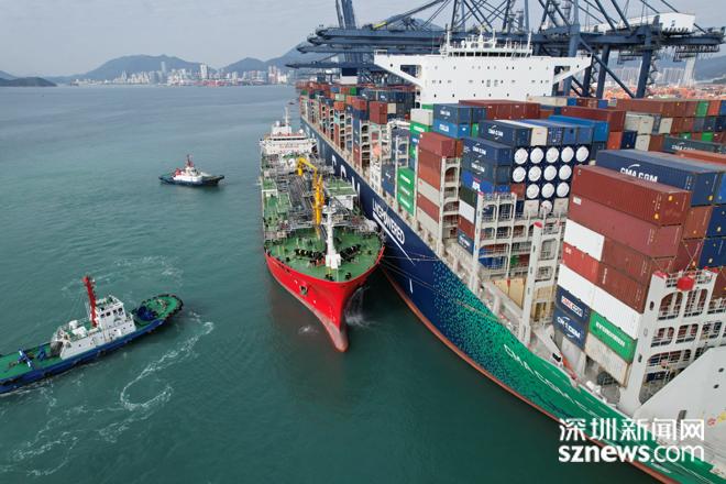 读特客户端•深圳新闻网2023年1月18日讯(记者 陈琳君)1月18日,全球最大LNG运输加注船“海油石油301”在全球最大单一码头盐田港通过“船对船”成功为全球最大型的双燃料动力集装箱船“达飞协和号”加注6000立方米LNG燃料。标志着盐田区承接地综合改革首批授权清单事项——赋予深圳国际航行船舶保税燃油加注许可权已全面落地,将进一步全面推进盐田区全球海洋中心城市核心区建设。