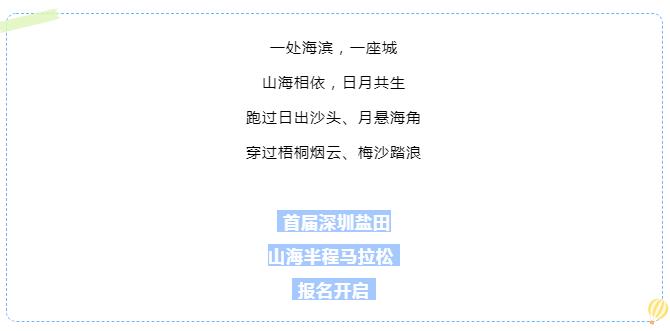 将“山高、水清、岸绿、景美”的盐田风景凝聚于眼前,全面展示“山海港城”的独特魅力,详细赛事路线待中国田径协会最终丈量后将会正式公布。