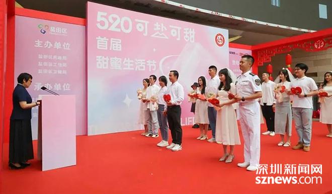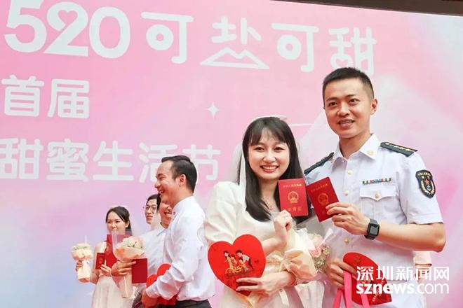 读特客户端·深圳新闻网2023年5月20日讯(记者 黎阳 李小辉 通讯员 林荣志 余慧雯)排队、填写资料、领证……5月20日上午10点,在盐田区婚姻登记处,已经有不少准新人们正井然有序地进行“领证”前的一系列流程。为了给新人们营造甜蜜温馨的氛围,盐田区民政局开启了“制造浪漫”模式,在“520”当天举办首届 “可盐可甜”甜蜜生活节暨集体颁证活动,近80对新人如愿以偿领到“红本本”。