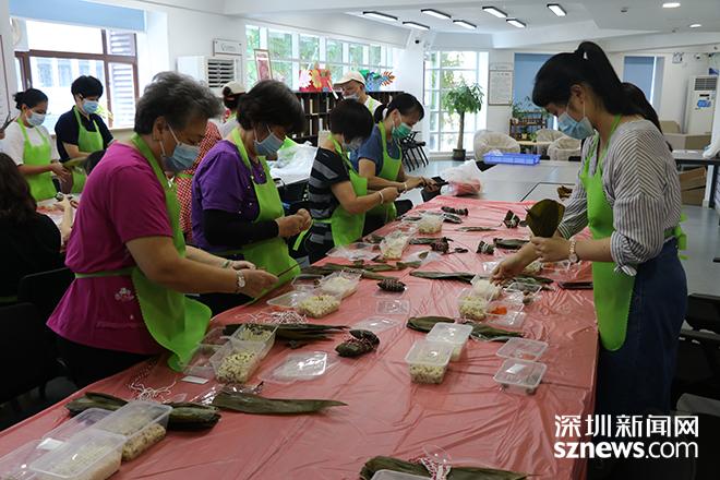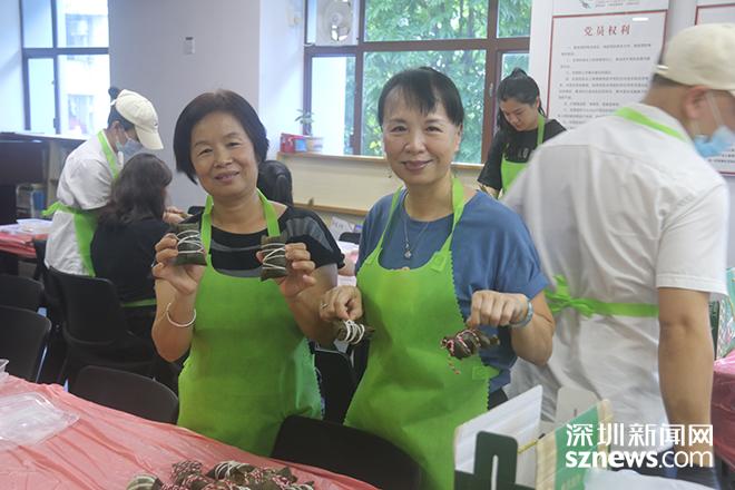 工作人员提前为居民准备好粽叶、糯米、咸蛋黄等食料和工具,在老师耐心指导下,大家一起捋粽叶、做漏斗状、填糯米、压紧实、扎捆。深港居民一边分享着关于端午节的典故和常识,一边相互交流包粽子的手法和技巧,在一片欢声笑语中,一片片粽叶、一粒粒糯米在大家手中变成了香甜可口的粽子,深港居民们也更深入地了解端午节的文化内涵和价值,丰富了精神文化生活。