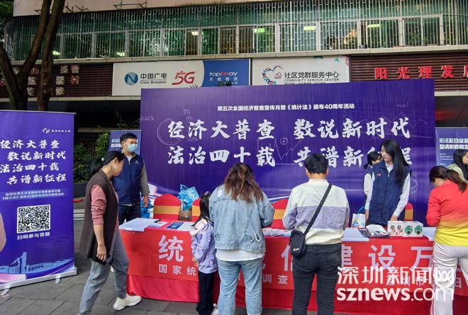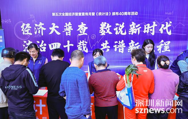 深圳新闻网2023年12月8日讯(记者 陈琳君)2023年是第五次全国经济普查年,也是《统计法》颁布40周年。12月8日上午,盐田区统计局组织开展第五次全国经济普查宣传月暨《统计法》颁布40周年宣传活动。本次活动以“经济大普查,数说新时代,法治四十载,共谱新征程”为主题,通过推动统计普法“进企业、进社区”,大力加强宪法学习宣传,全方位、多渠道宣传统计法律法规,普及诚信知识、诚信文化,弘扬统计法治精神。