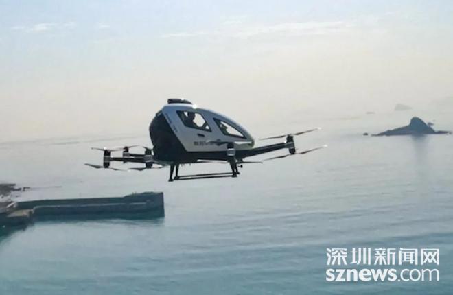 两轮绕场飞行后,首位试乘者王先生进入EH216-S型无人驾驶载人飞行器,顺利完成试乘体验,意味着盐田区eVTOL首次载人飞行圆满成功。