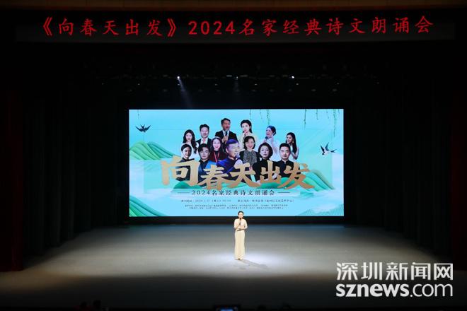 深圳新闻网2024年1月28日讯(记者 陈琳君)“站在春天里,春风初生,春林初盛,我们只读着诗,就十分美好……”1月27日,向春天出发——2024年名家经典诗文朗诵会在深圳市盐田会堂举行。多位知名朗诵艺术家与深圳广大朗诵爱好者齐聚一堂,共同演绎“春天的故事”。
