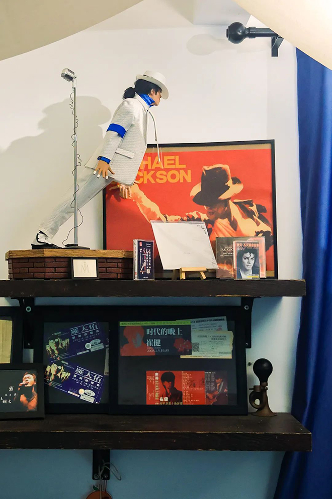 迈克杰克逊手办、黑胶唱片、满墙的旧海报和老照片、复古沙发、老式录音机……走进老崔的“音乐空间”,就能一下子感受到“小闲即欢,小清即静”的松弛感。老崔说,盐田是一个没有“压迫感”的地方,在这里听音乐是真正的享受和放松。