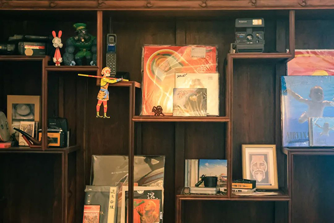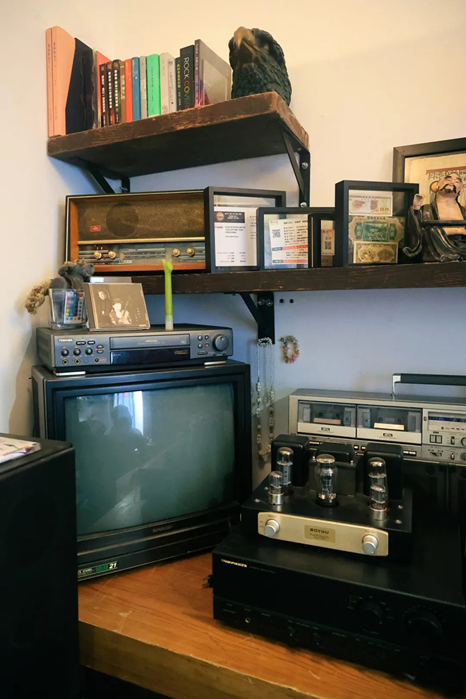 “这里很有设计感啊!是你自己设计的吗?”我们忍不住问。“啥设计感啊,就是自己收藏的东西全部堆进去了。”老崔带着一口“东北腔”笑着说。