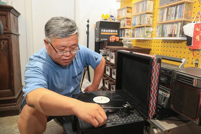 “我喜欢黑胶,是因为它的音质更为温润且真实,能够还原音乐的细节和情感。”聊天中,老崔边沏茶,边为记者放了一张黑胶——小号演奏家Herb Alpert的专辑。在悠扬的旋律中,找到了一种难得的宁静。